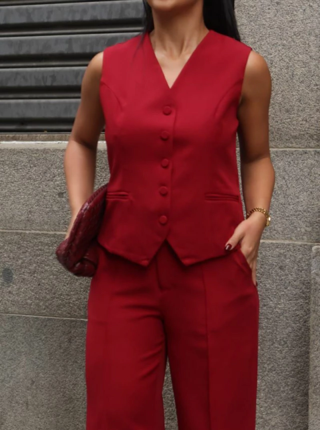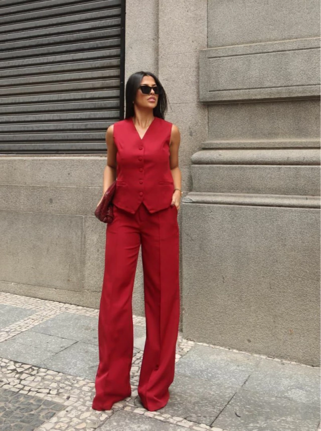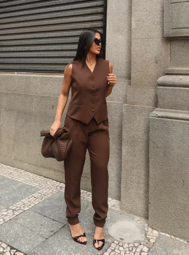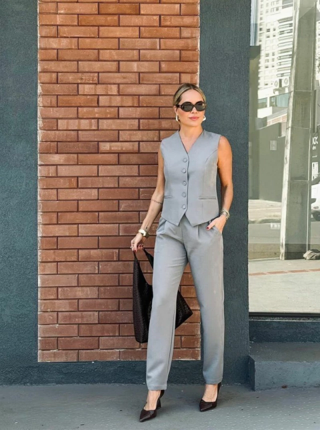 Caso queira um look mais clássico, uma inspiração para o trabalho, pode-se usar um scarpin com uma calça alfaiataria, além de uma camisa lisae e pra fechar o look complete com o colete aberto. Uma composição rápida e super elegante!